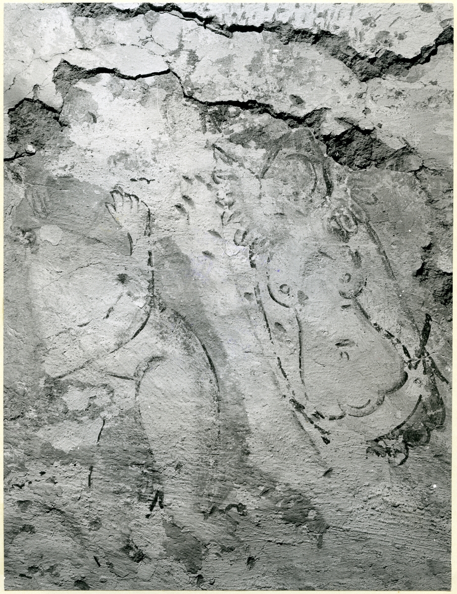 Fragment av medeltida väggmålningar i Tillberga kyrka, 1954.