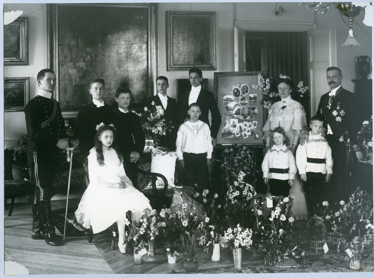 Grupporträtt av landshövding Claes Richard Wersäll med familj. 1904.