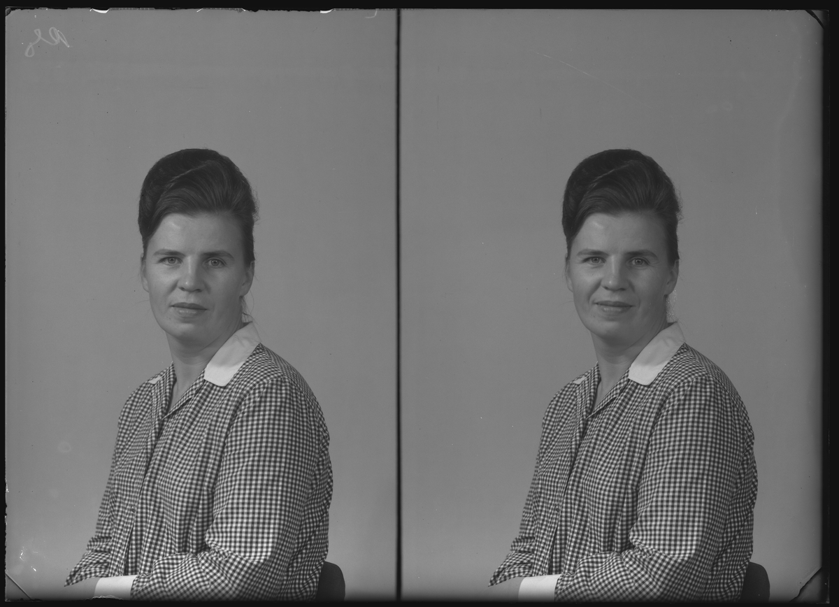 Kvinnoporträtt, körfoto. Fru Mylläri, Agnegatan 11, Kobäck. Ur Gustaf Åhmans samling.