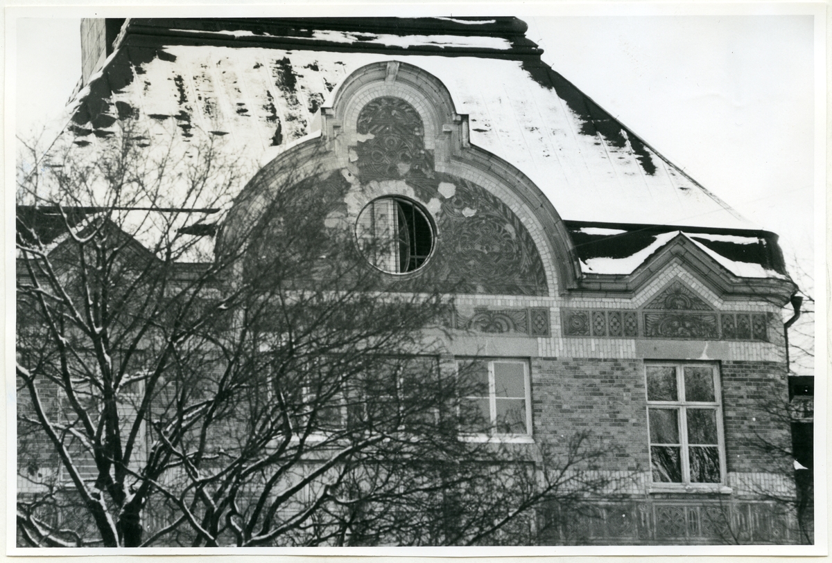 Engelbrektsgatan 19. Del av taket på Herrgärdsskolans huvudbyggnad.