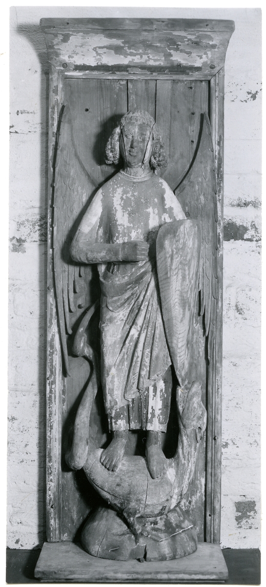 Helgonbild föreställande St Mikael i Möklinta kyrka.