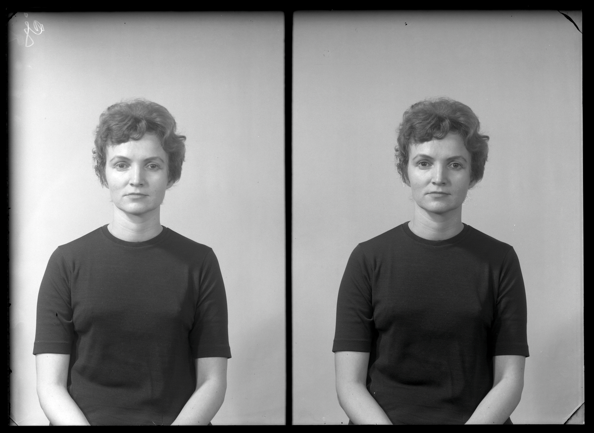 Porträtt, körfoto. Fru Sirkka Grahn, Skomakarevägen, Kolbäck.