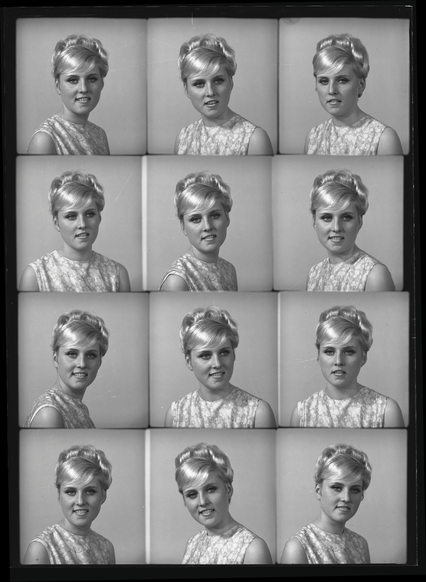 Kvinnoporträtt, polyfoto Gunvor Kullinger, Idrottsvägen 5, Kolbäck.