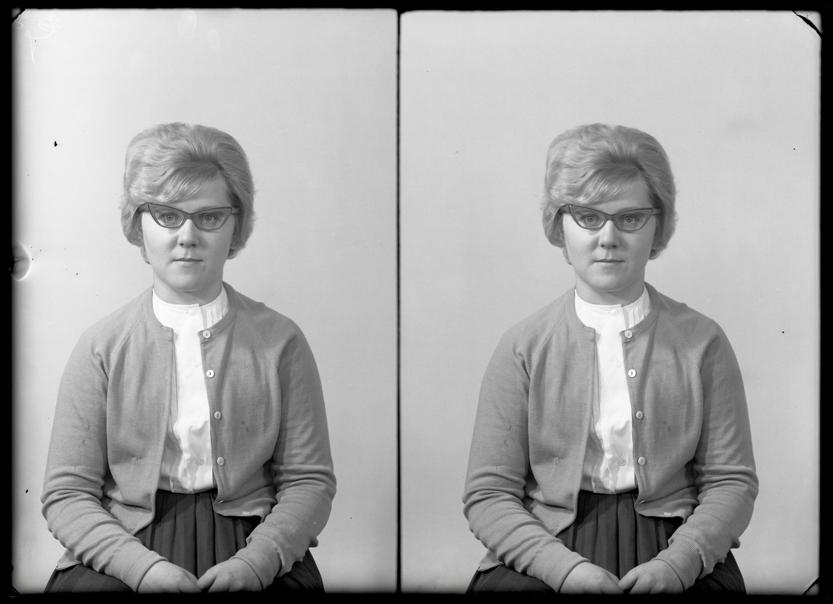 Kvinnoporträtt, körfoto, fru Gerd Magnusson, Lospånga, Dingtuna.