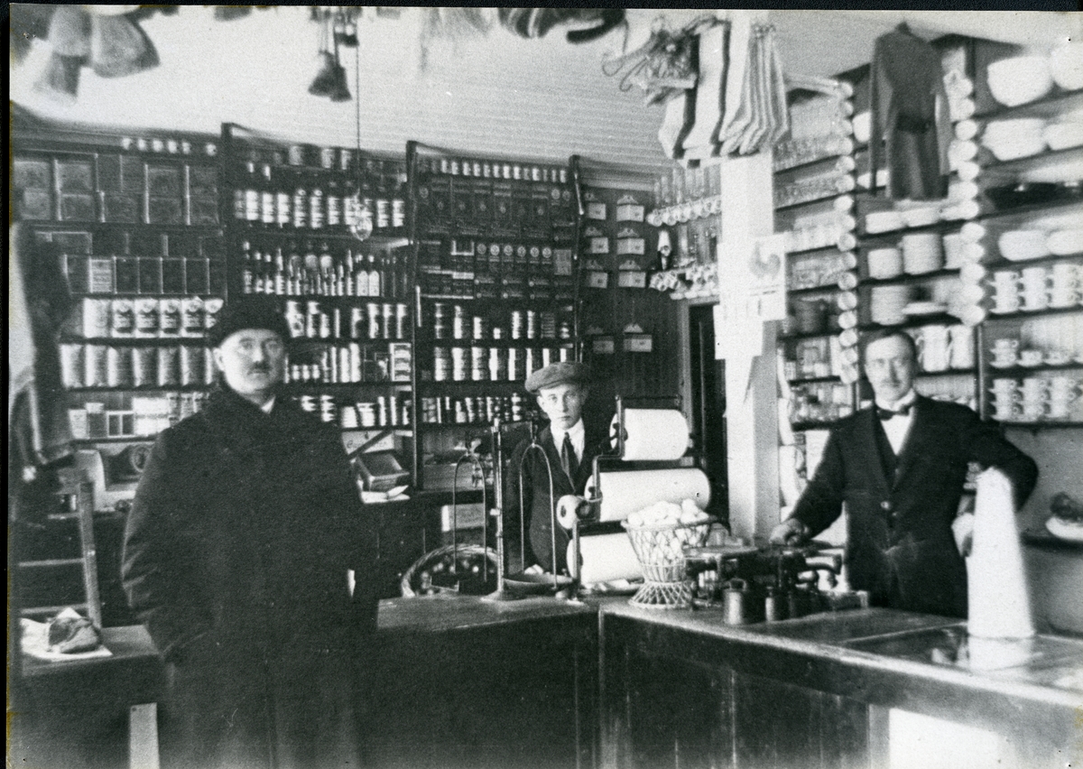 Interiör av diversehandeln i Hornsund, c:a 1900.