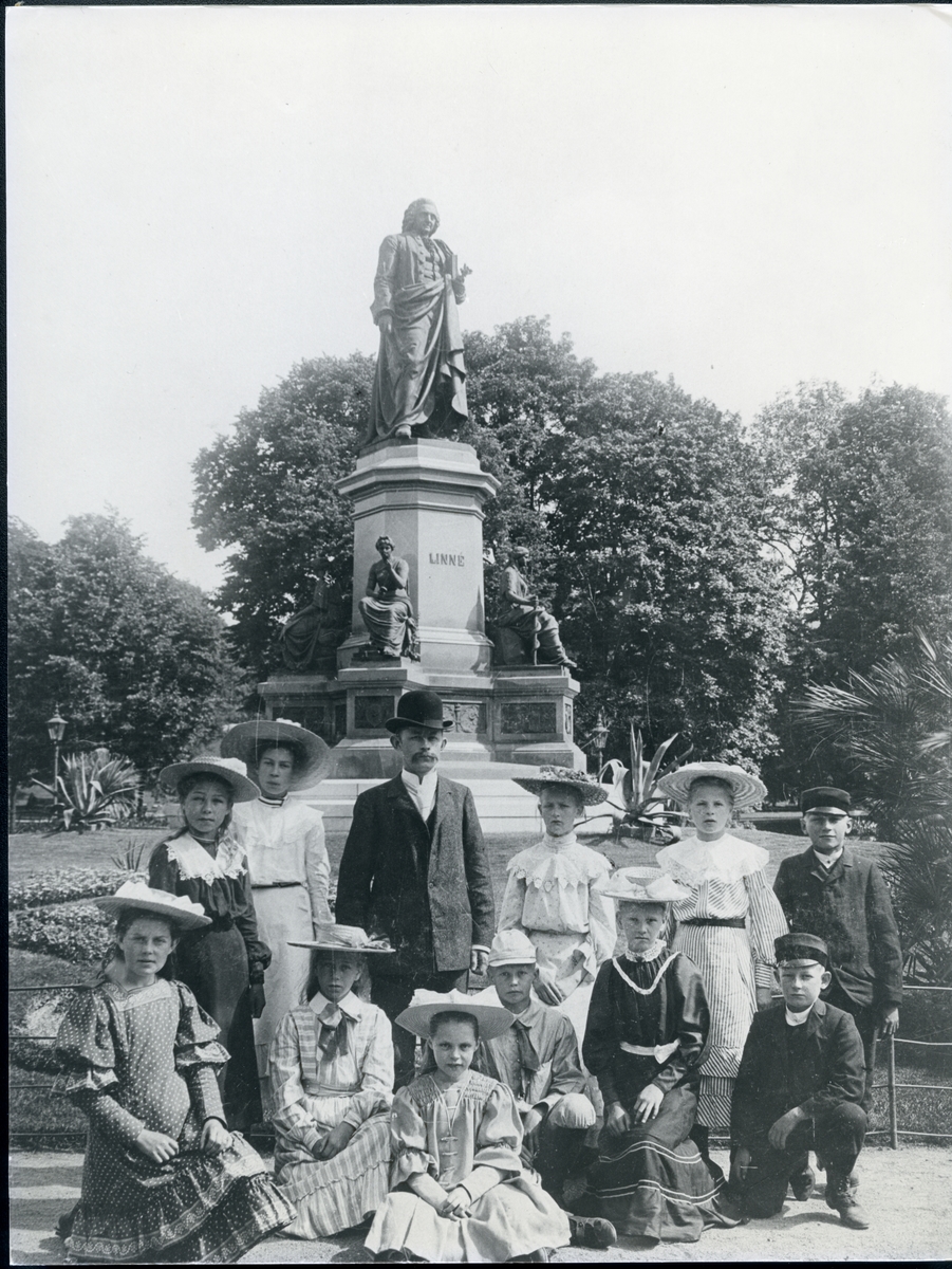 August Friberg och Norbergsbarn på skolresa till Stockholm. C:a 1910.