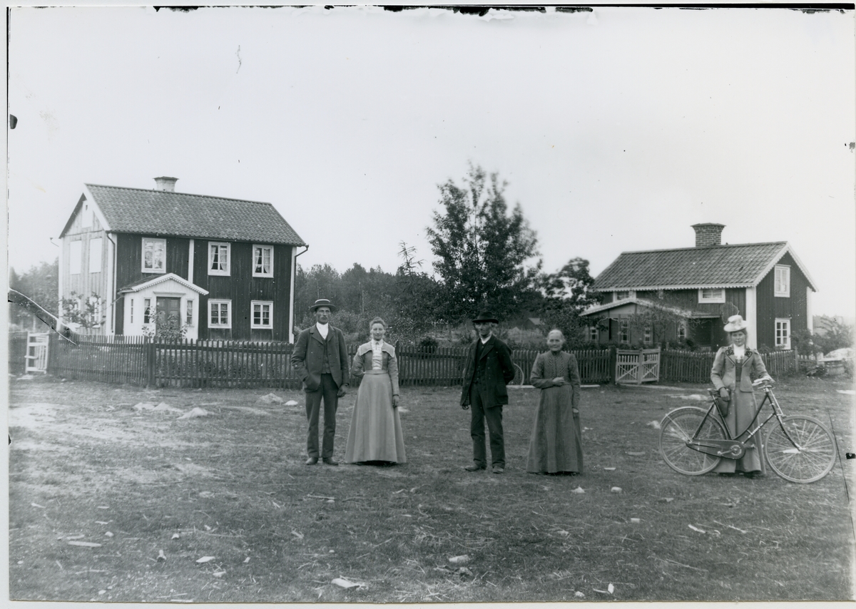 Sunnankil. Familj och besökare framför bostadshusen. C:a 1910.
