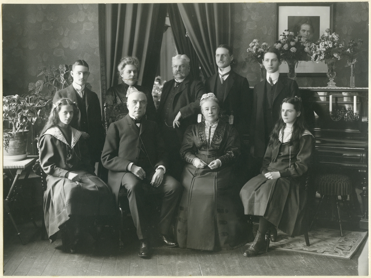 Familjerna Gagge och Silfverstolpe, troligen på Stora Åsby i Rytterne socken. C:a 1910.