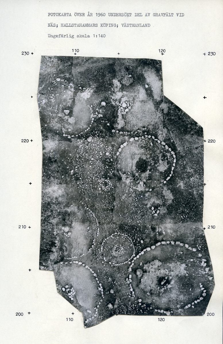 Fotokarta över år 1960 undersökt del av gravfält vid Näs.