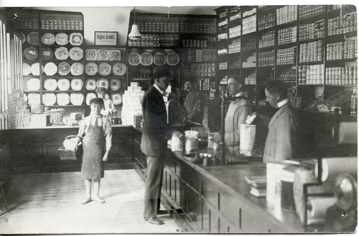 Interiör från Kumlins matvaruaffär, c:a 1910.