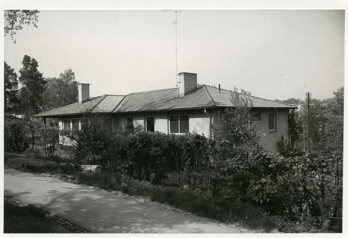 Västerås, Lustigkulla. Bostadsbygggnad med ljusgrå spritputs, lättbetong. 1972.