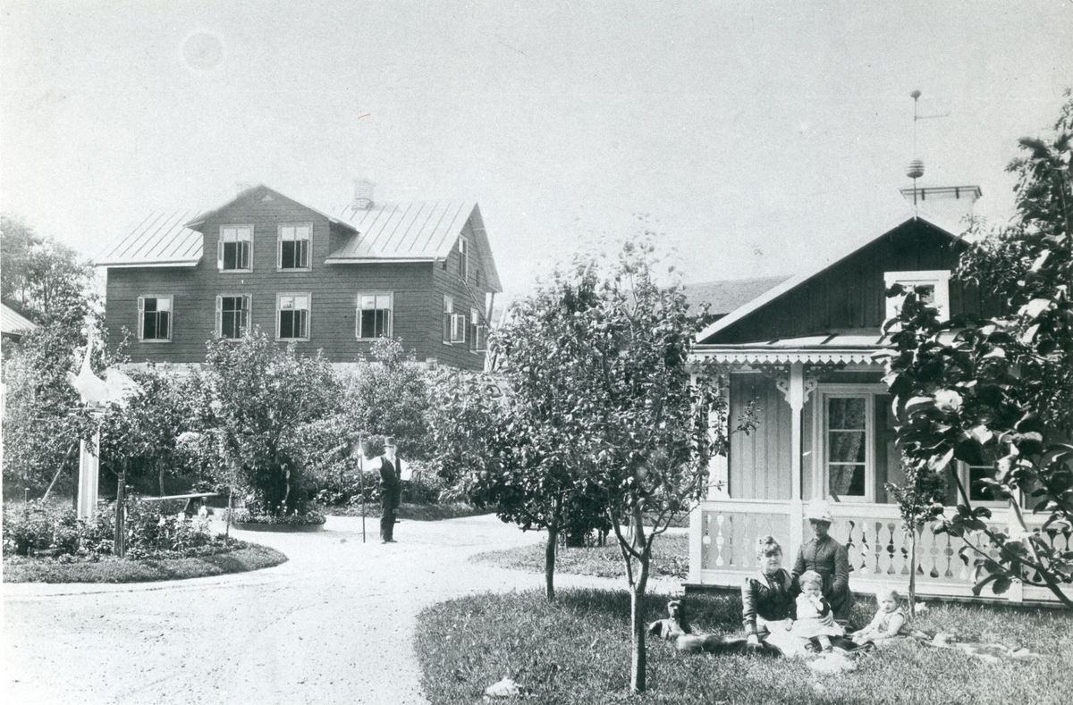 Exteriör av Kungshallen med Tor Modéens familj utanför, 1890.