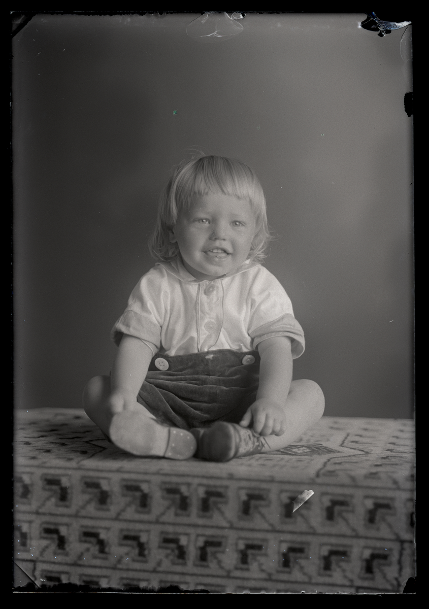 Titel: Barnporträtt, Sören. Fru Eriksson, Karlsson, Box 111, Hallstahammar. Ur Gustaf Åhmans samling.