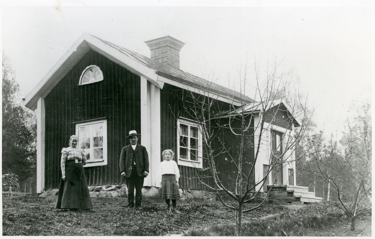Flängan 1:29. Familjen Aug. Gren stående framför stugan.