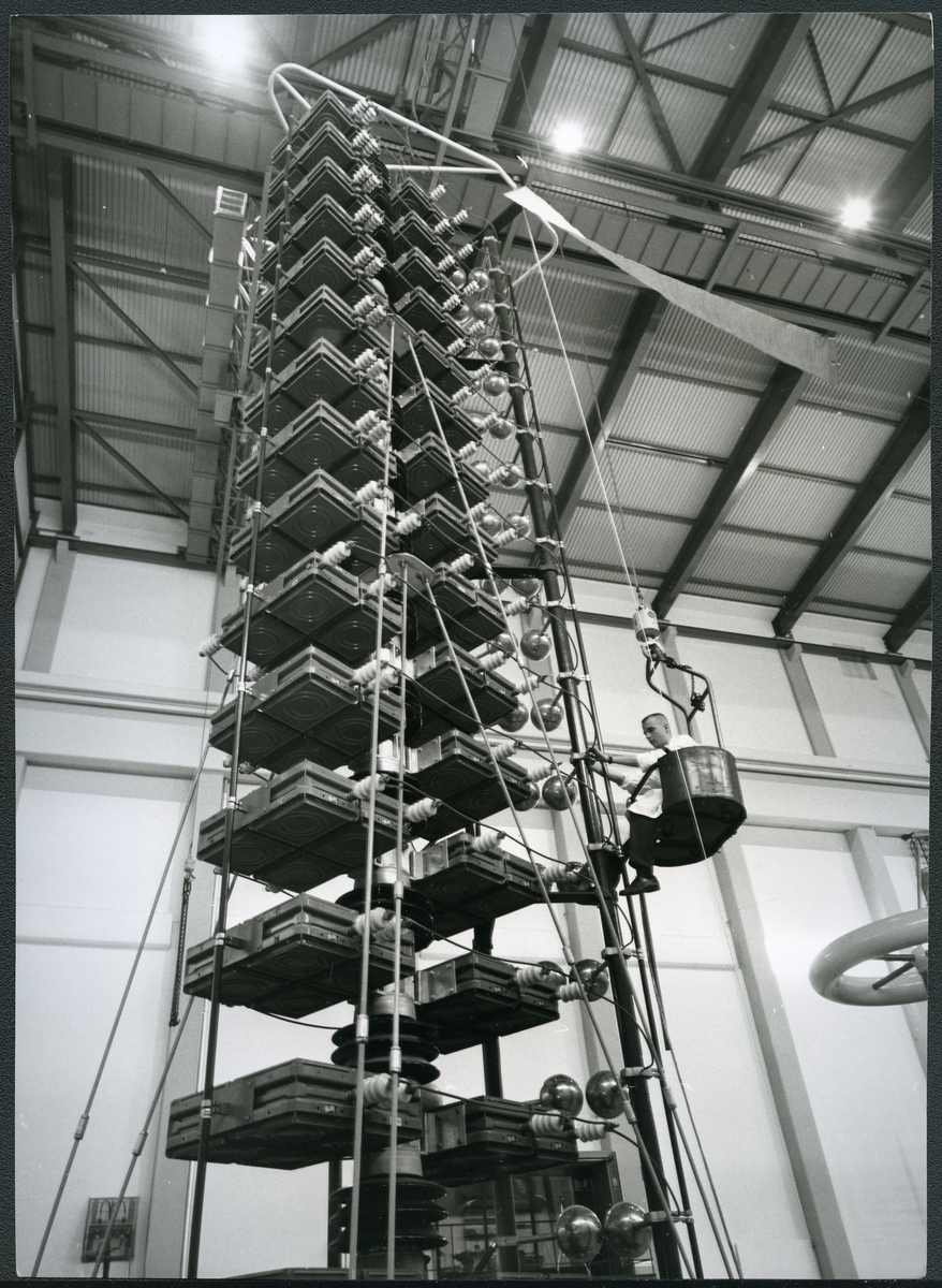 Titel: Ludvika sn, Ludvika kn. Ludvikaverken, högspänningslaboratoriet. 1963.