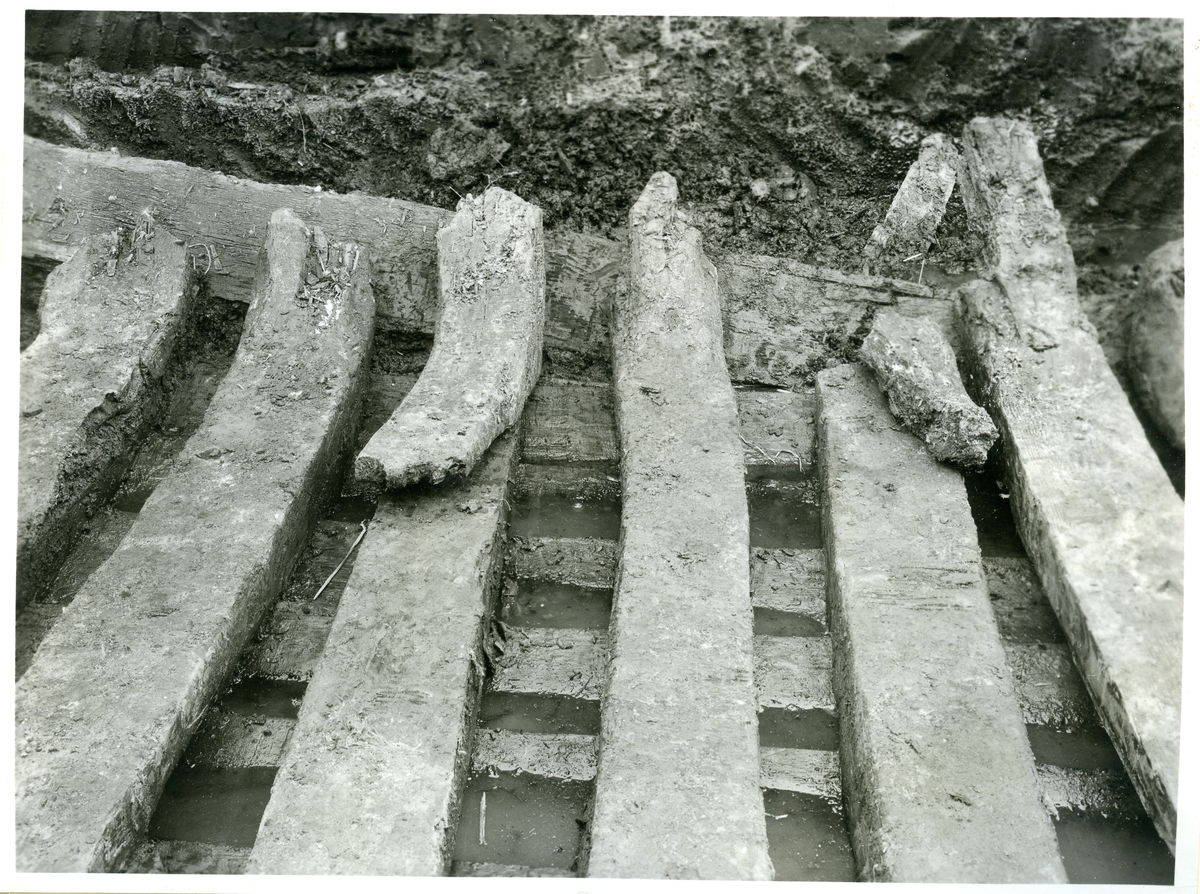 Från utgrävningen av båtfyndet i Gamla hamnen i Västerås, 1935.