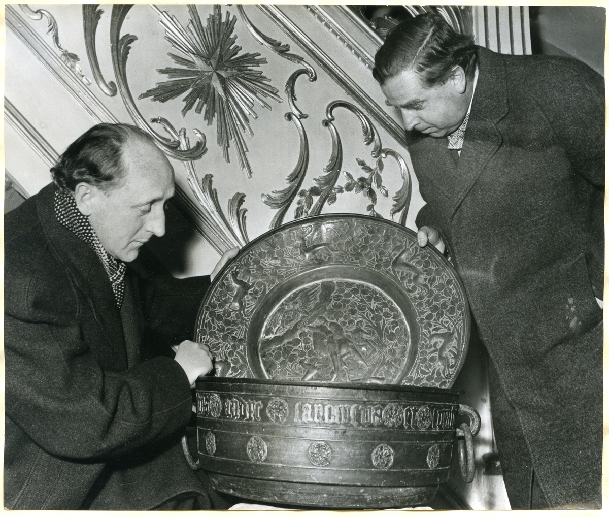 Björksta sn, intendent Drakenberg vid dopfunt i kyrkan.