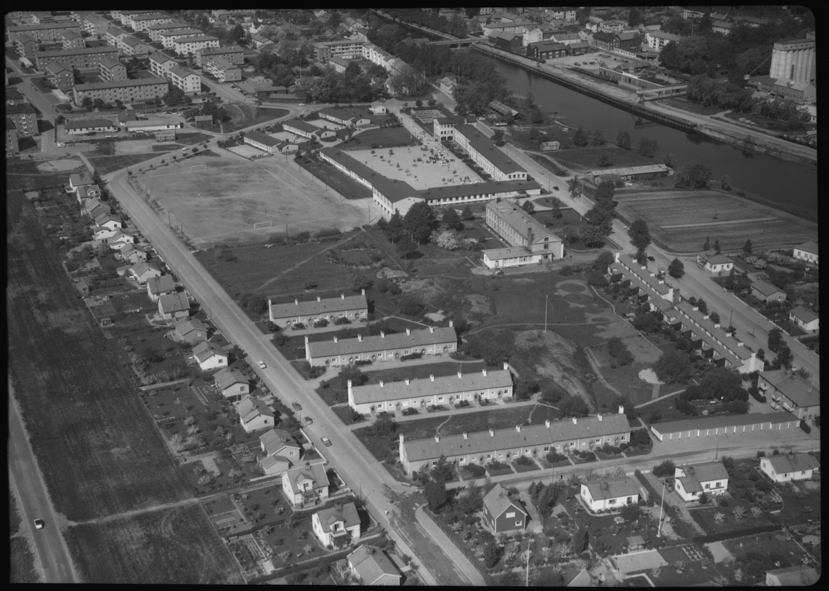 Flygfoto över Arboga, med Gäddgårdsskolan.