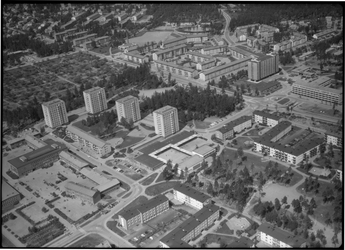 Flygfoto över Skiljebo centrum, stadsdel Skiljebo, Västerås.