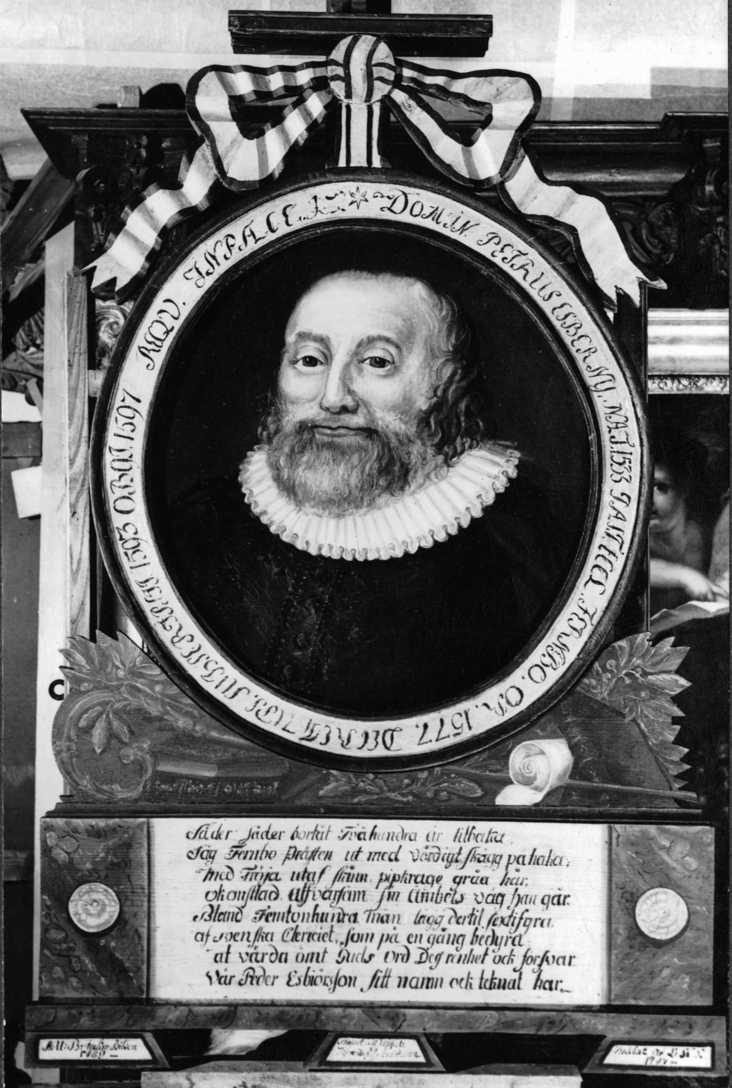 Beskrivning: Porträtt av kyrkoherdar i ovala ramar med bandrosett och inskriftfält. 1797.