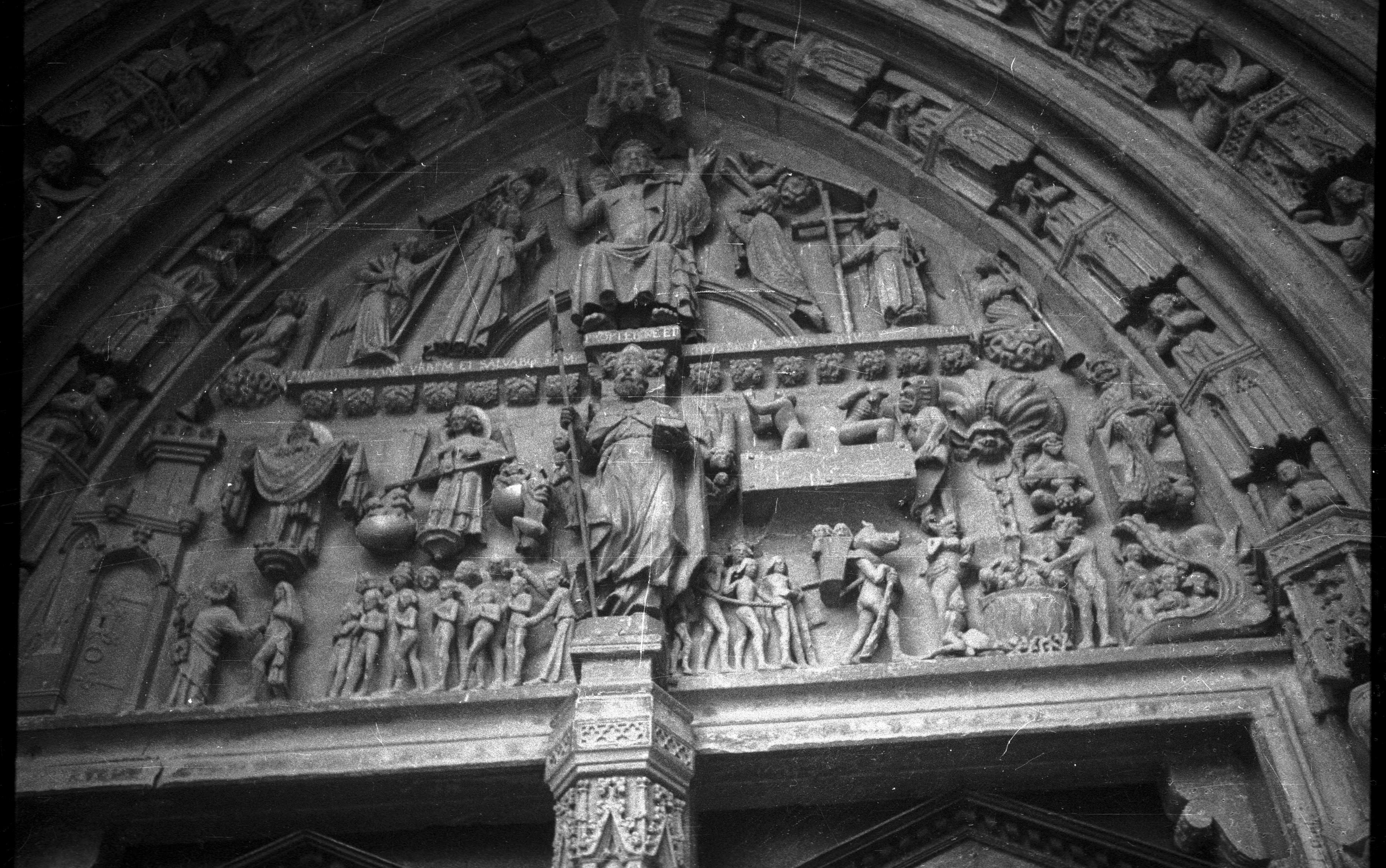 Cathédrale St-Nicolas de Fribourg. Västportalens tympanon.