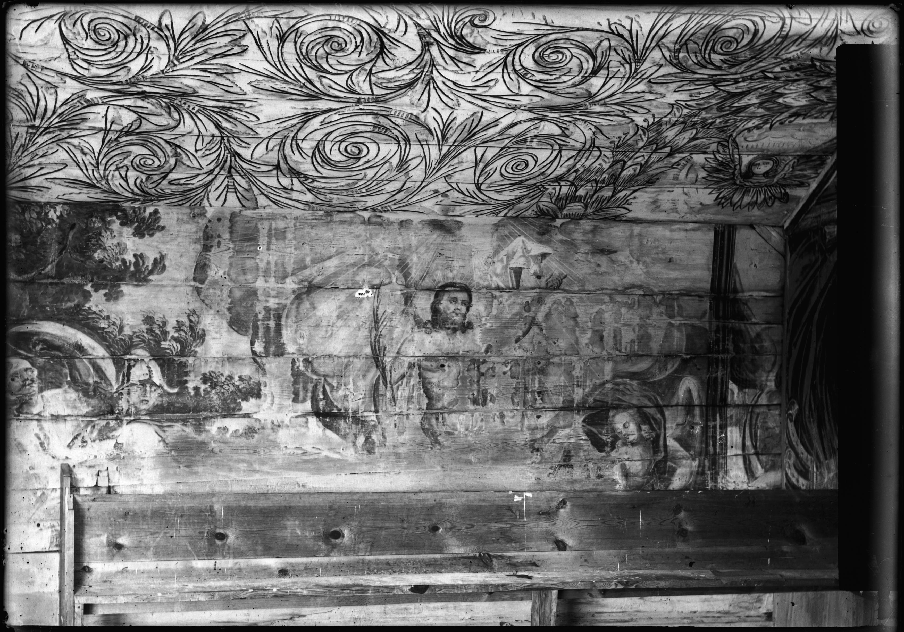 Beskrivning: Målningar på vägg. Före restaurering 1924.