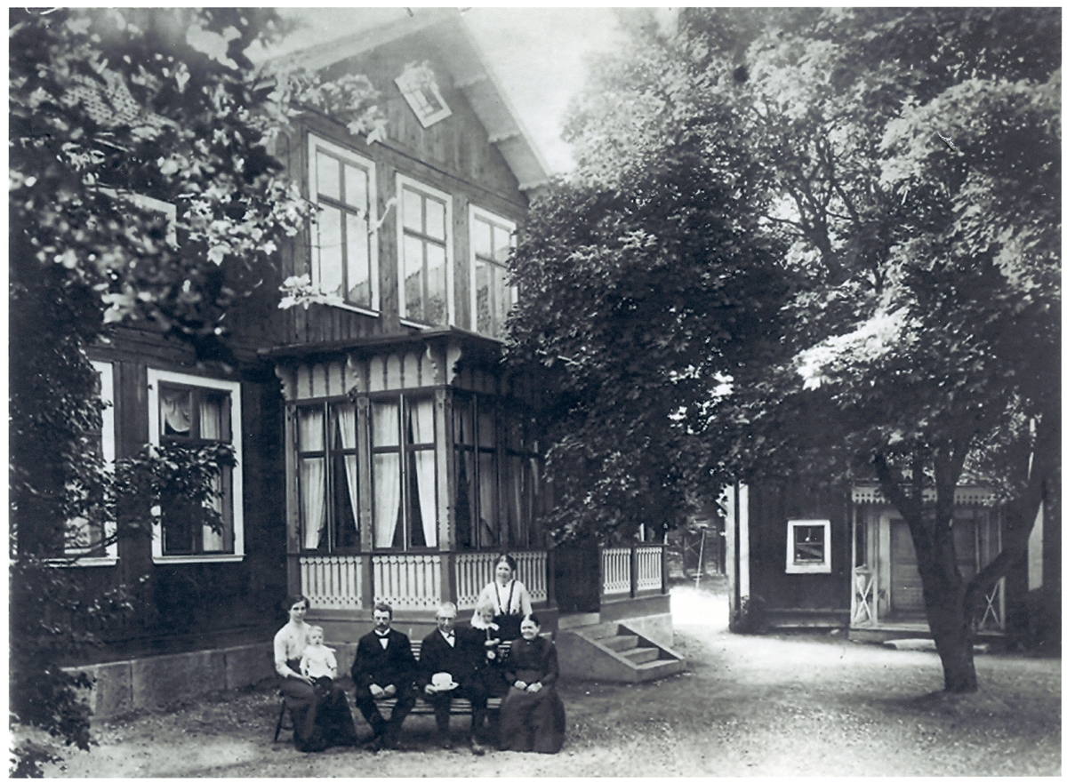 Familj utanför bostad.