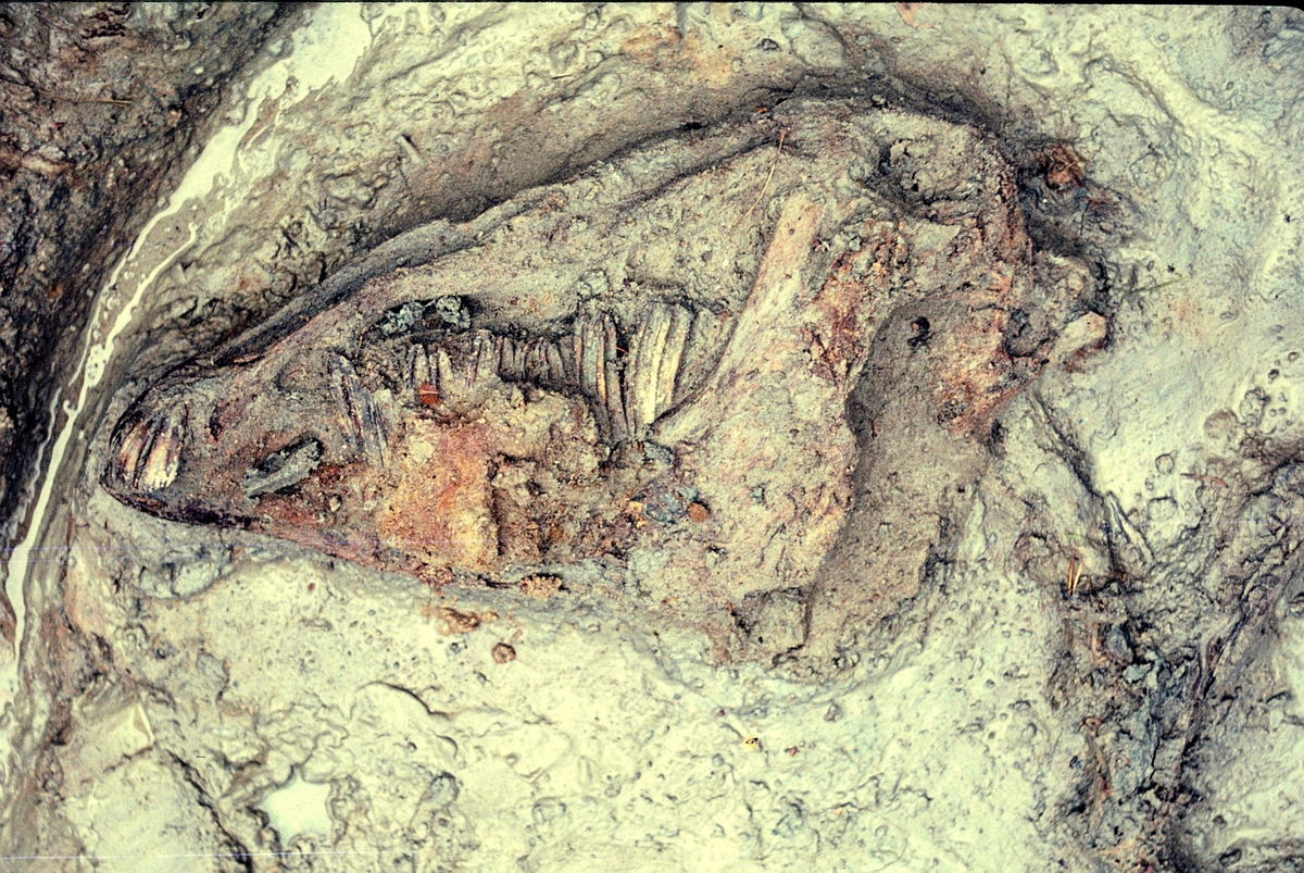 Norsa RAÄ 131, grav 1. Hästkranium i närbild. 1964.