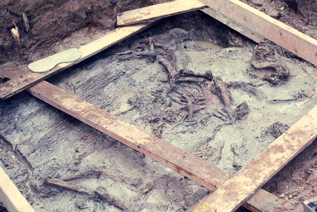 Norsa RAÄ 131, grav 1. Hästskelettet. 1964.