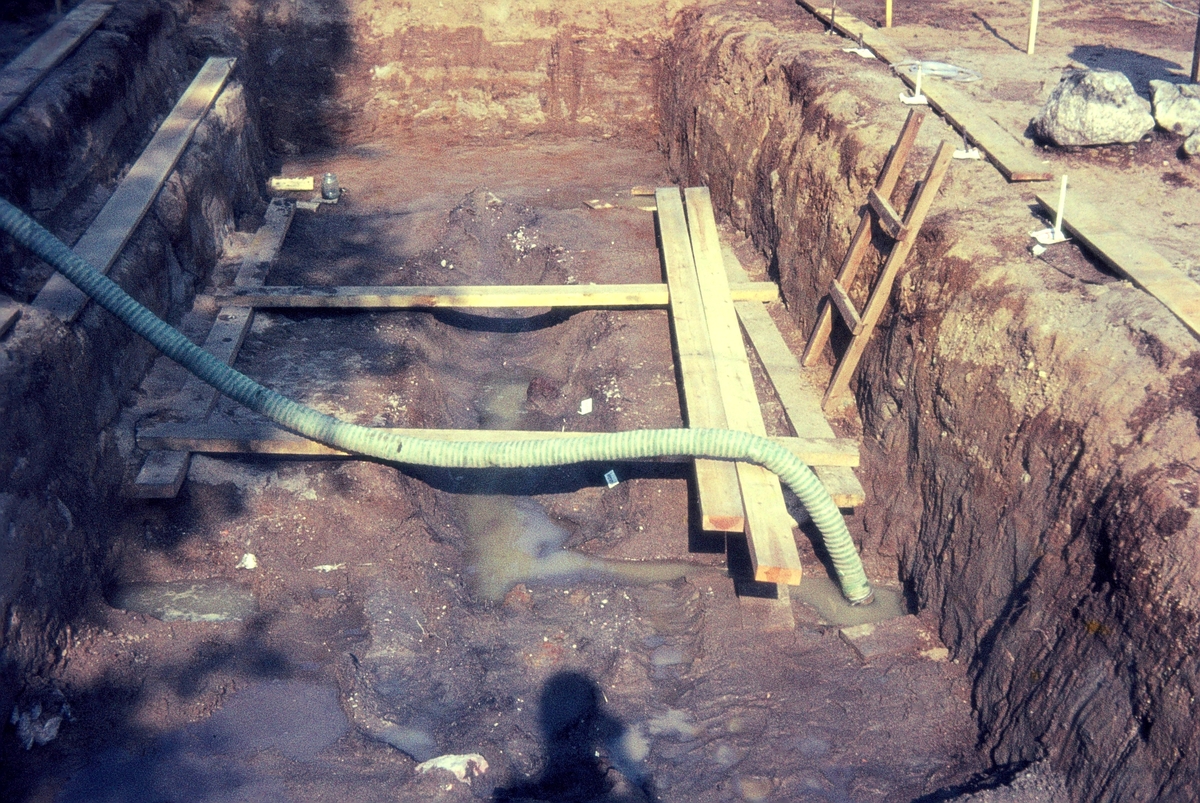 Norsa RAÄ 131, grav 1. Regnvattenskadad båtgrav i solsken. 1962.