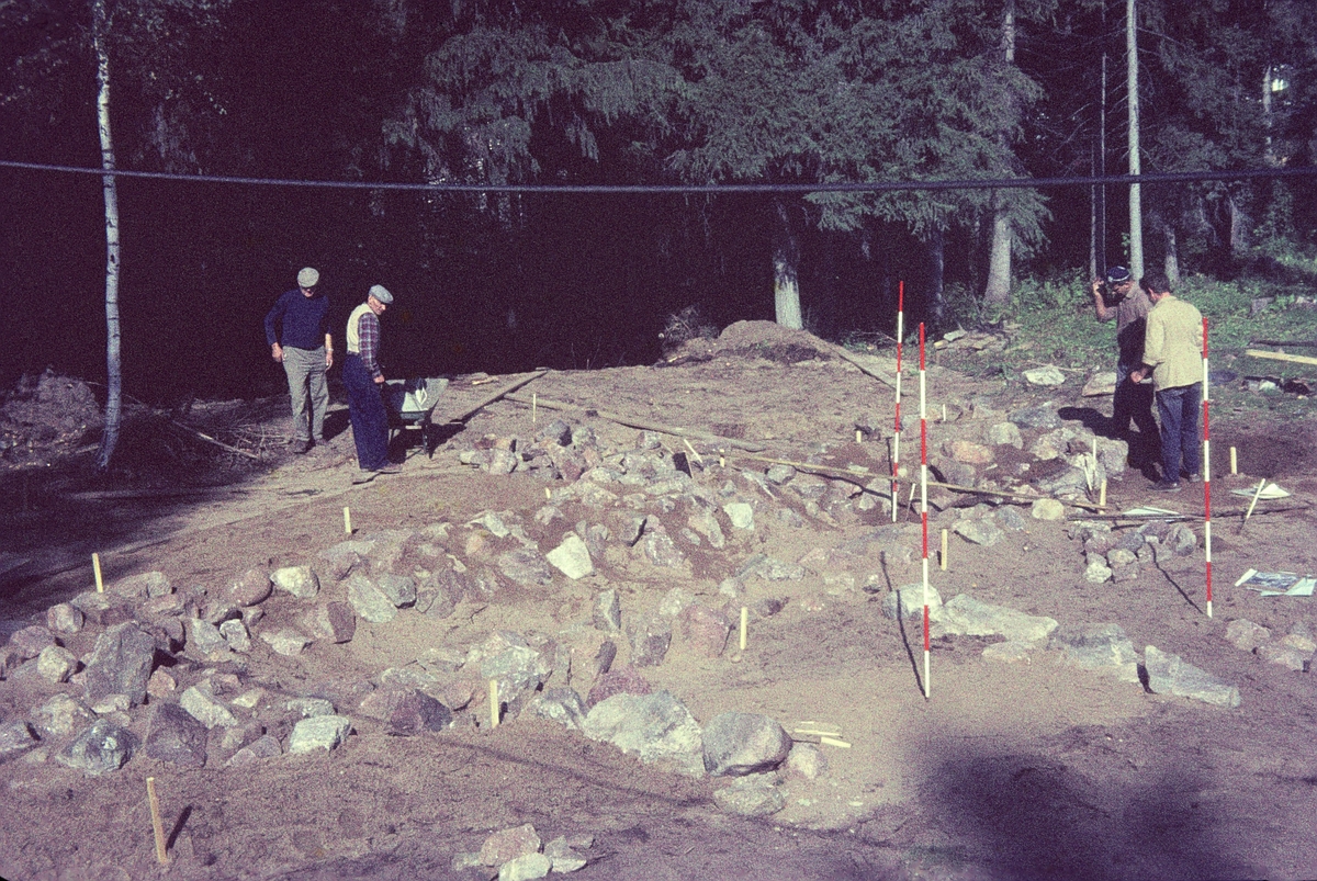 Norsa RAÄ 131. Påbörjad utgrävning av båtgrav och kammargravar. 1963.