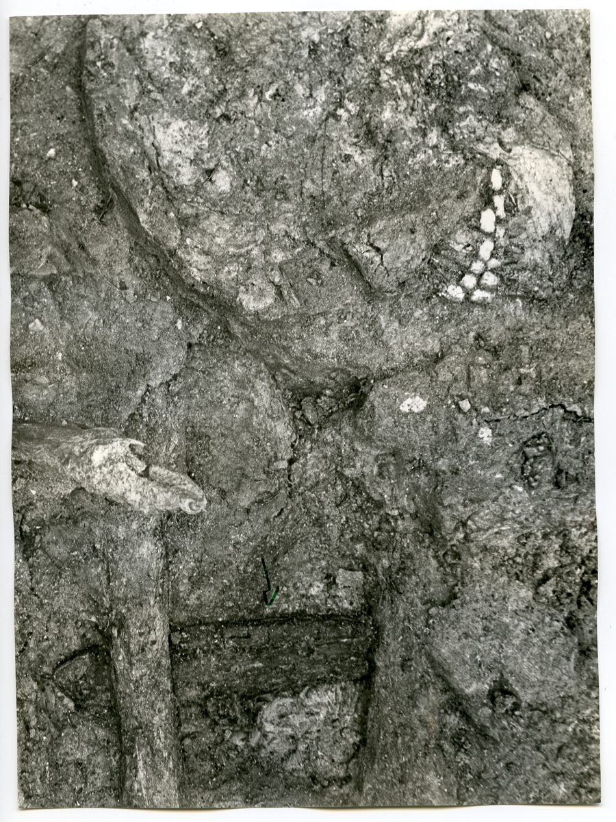 Norsa RAÄ 131, grav 1. In situ nära kraniet: benkammen. 1964.