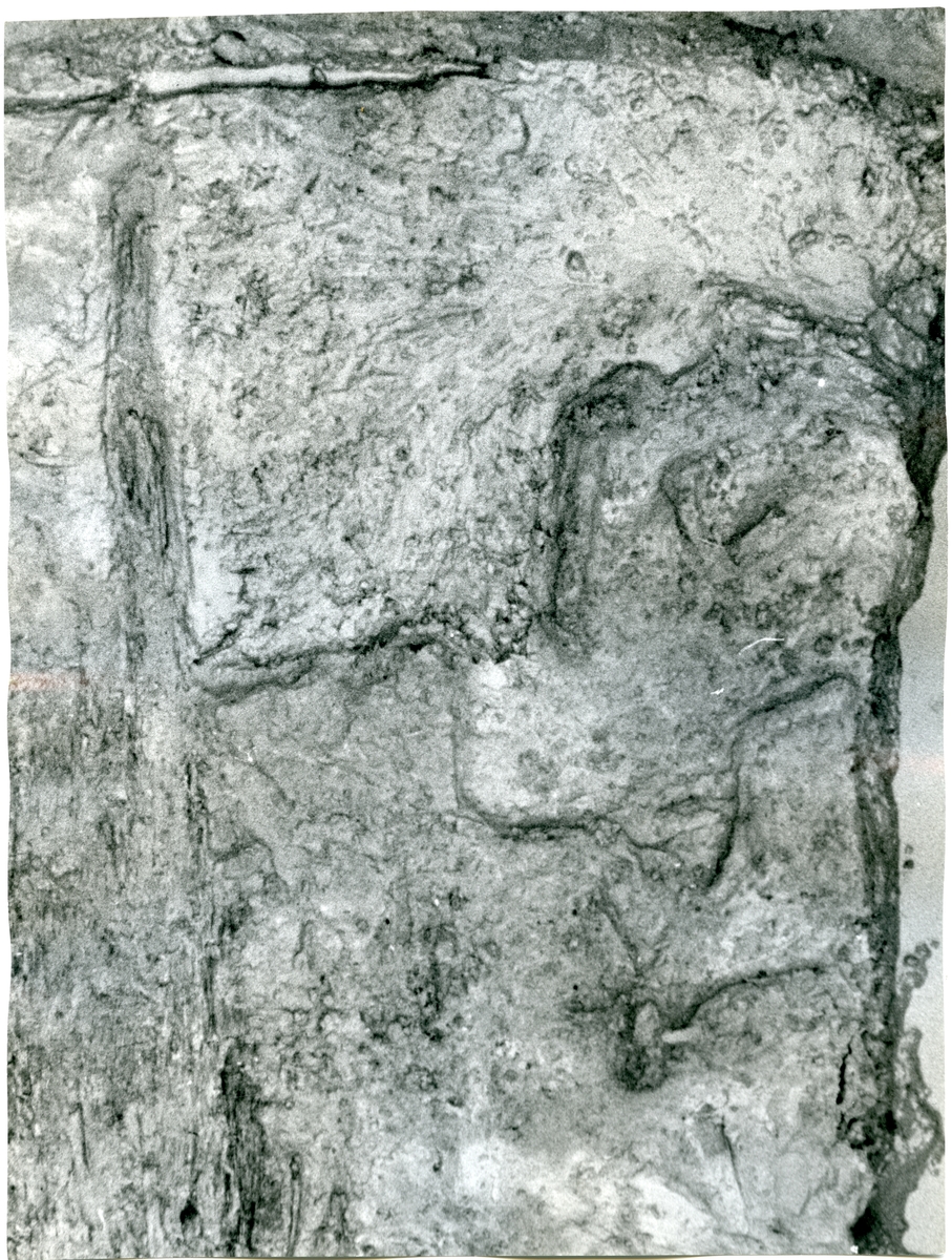 Norsa RAÄ 131, grav 1. In situ: Skelettet av hunden.1964.