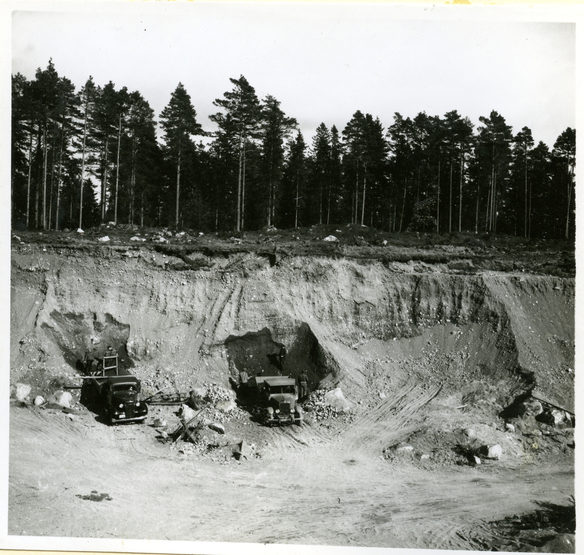 Alvesta 3:1, grustaget. 1938. Med lastbilar.