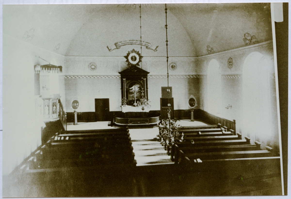 Interiör av kyrkan mot altaret, omkr. 1900.