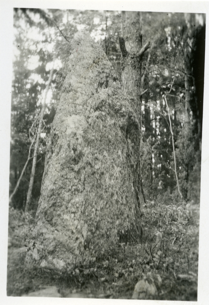 Fornlämning: Rest sten i skogsmiljö.