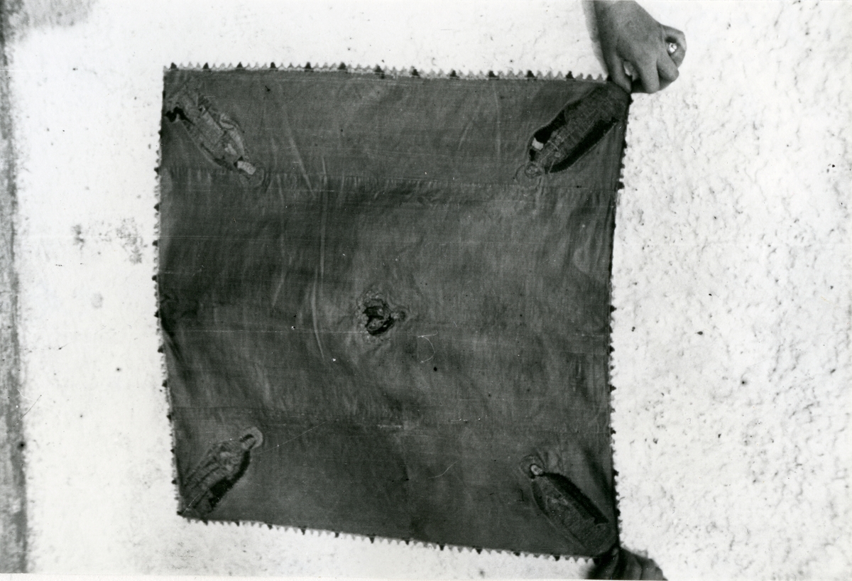 Kalkkläde med medeltida broderi - baksidan, Medåker kyrka.