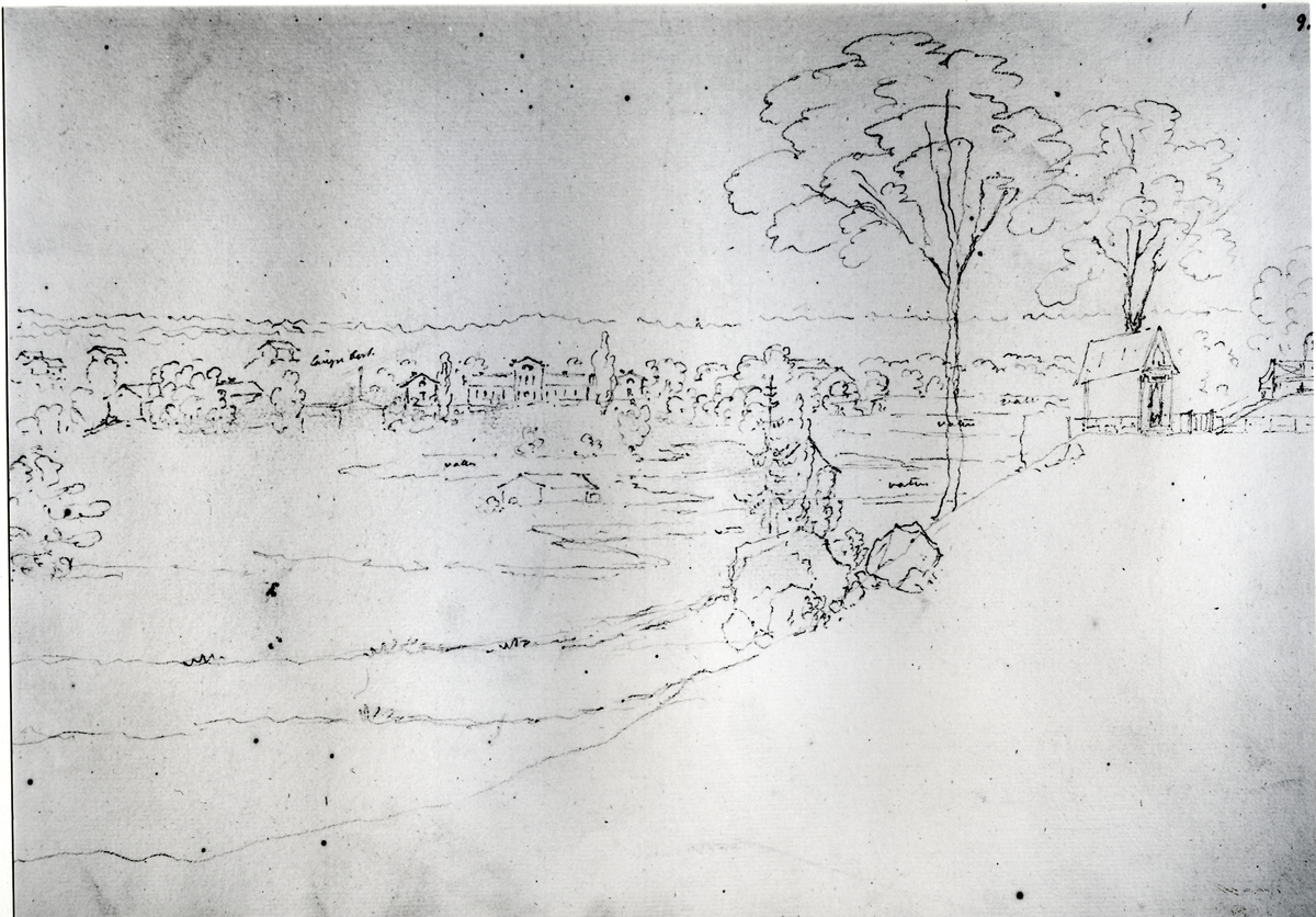 Titel: Rytterne sn, Västerås. Åholmen. Skiss från Åholmen av Carl Filip Mannerstråle.