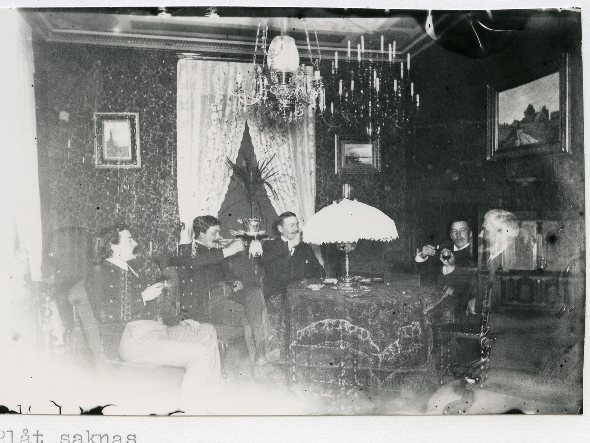Festande män vid bord.