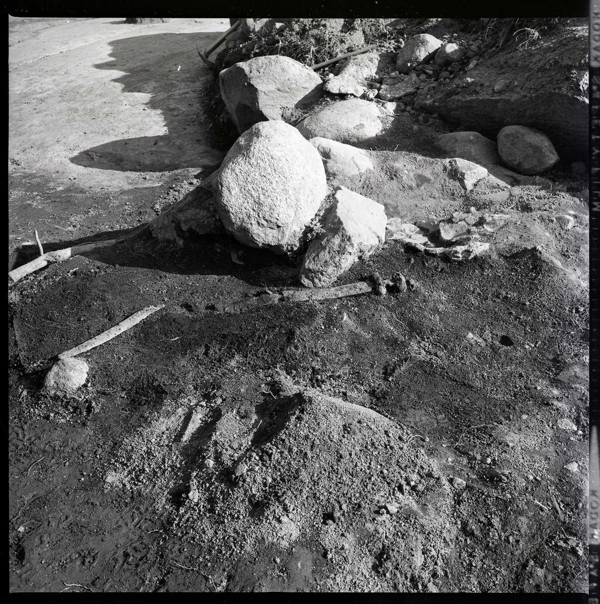 "Hummelbacken". Utgrävning av gravfält RAÄ 117, anläggning 9, svärd. 1961.