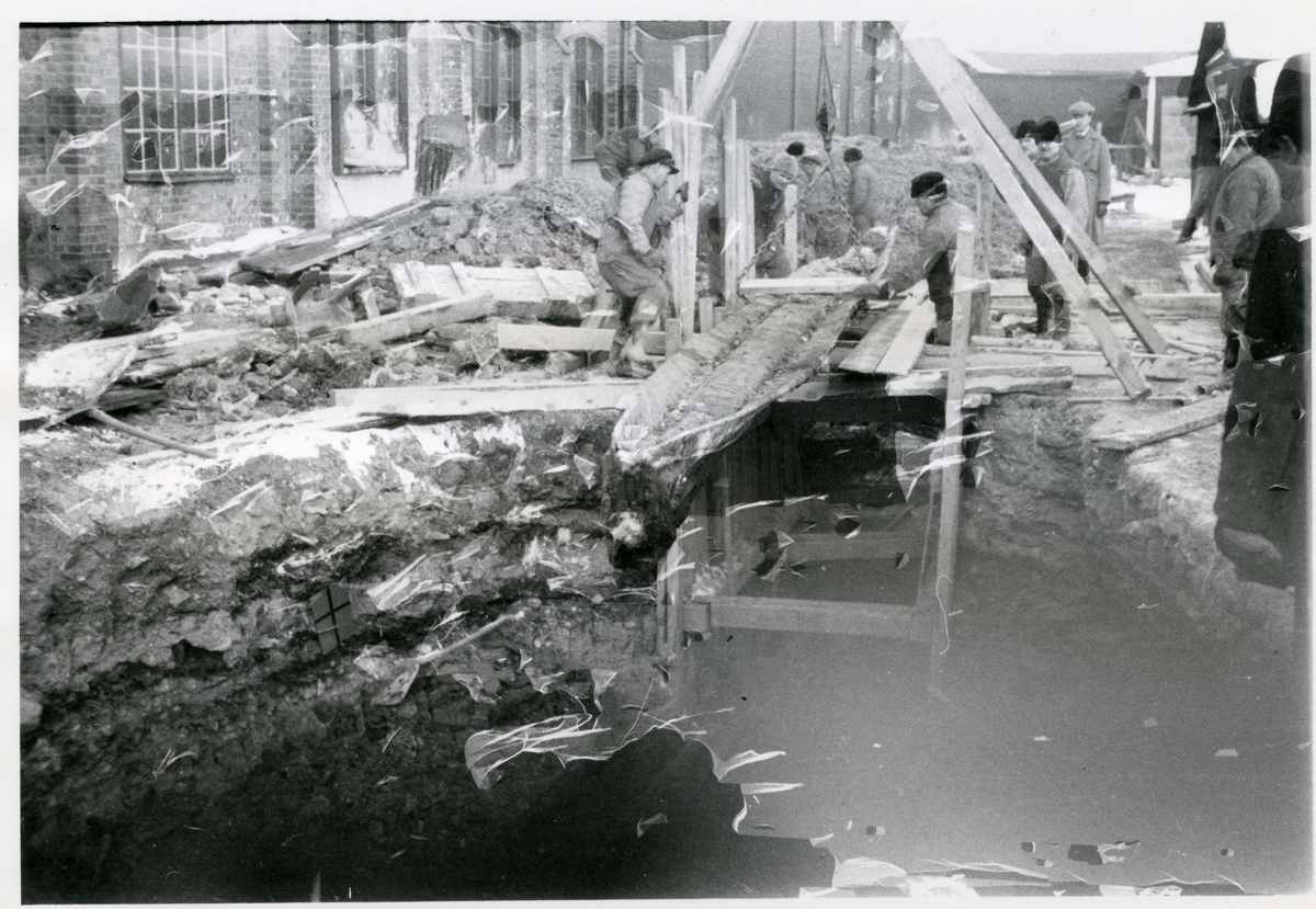 Arbetsbilder från båtfyndet i Gamla hamnen i Västerås, 1935.