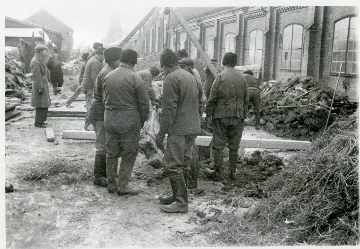 Arbetsbilder från båtfyndet i Gamla hamnen i Västerås, 1935.