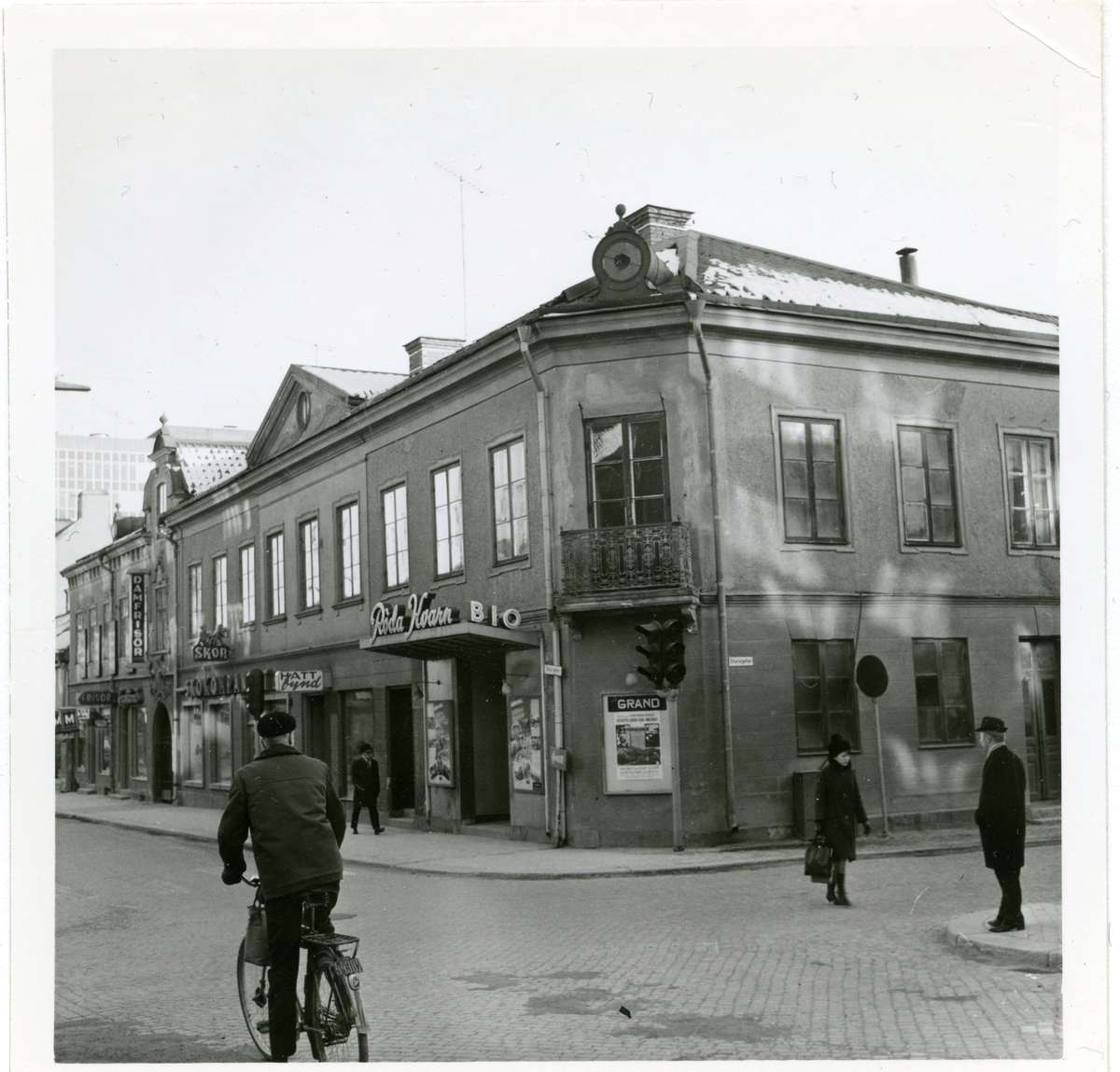 Västerås. Stora gatan mot öster med biografen Röda Kvarn i hörnet till Sturegatan.