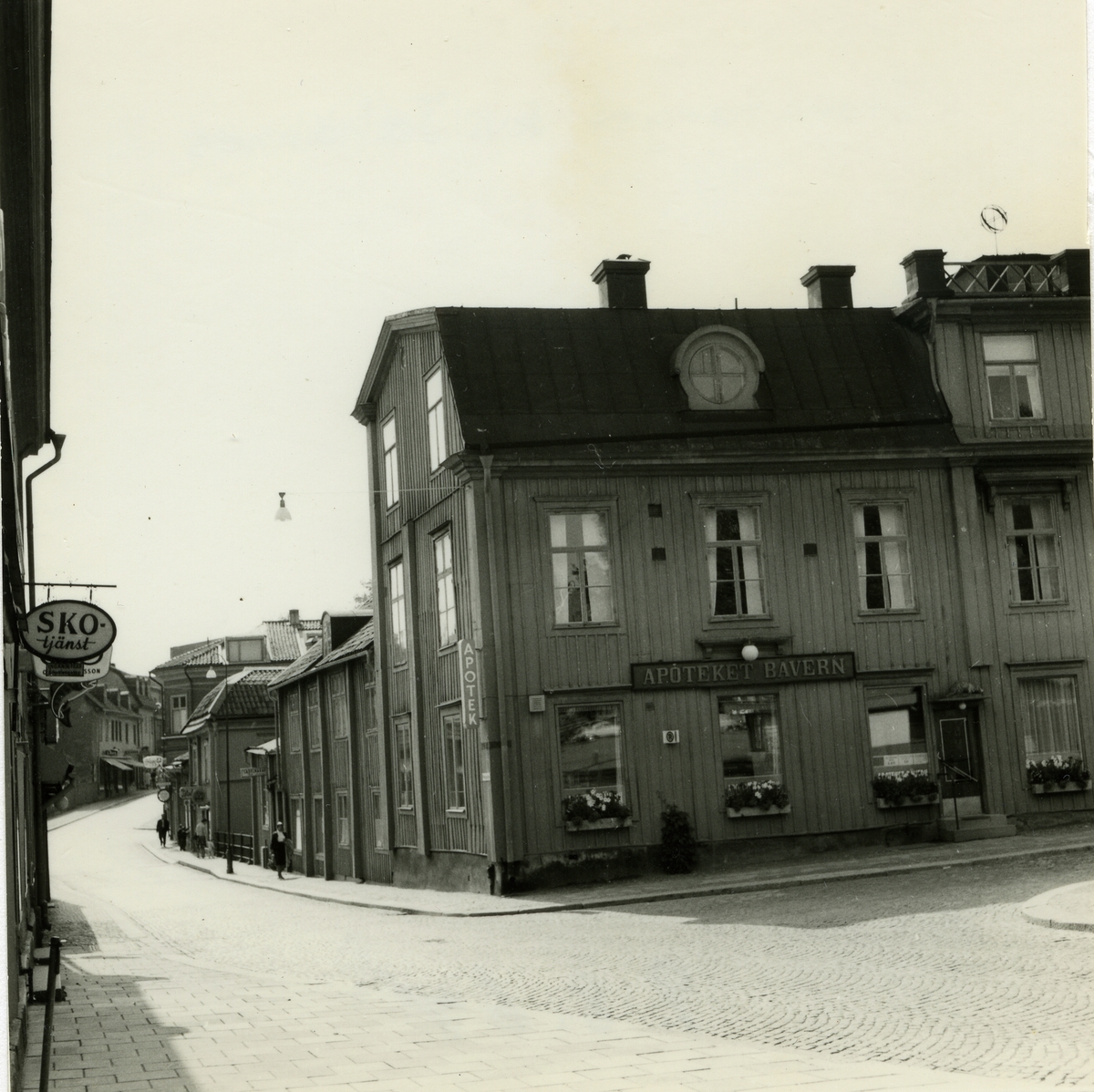 Västerås. Kungsgatan och Apoteket Bävern vid Bondtorget. 1964.