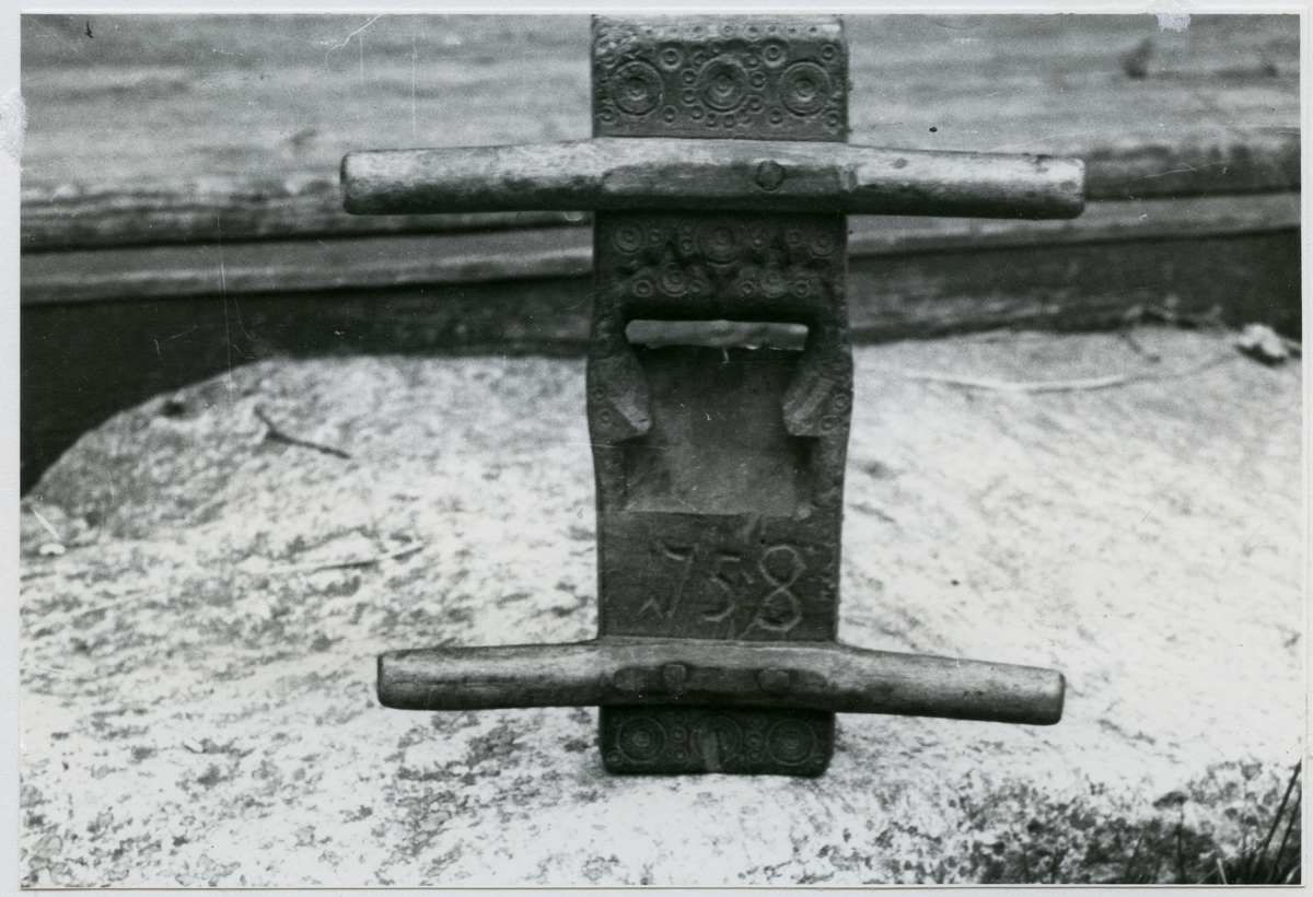 Möklinta Hembygdsförening. Gammelgården, 1933, Oxhyvel daterad 1758.