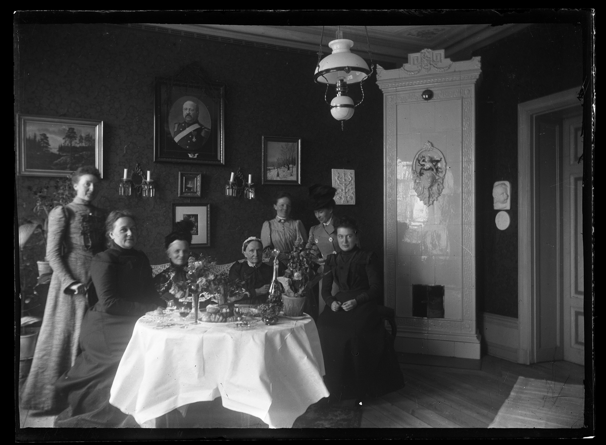Heminteriör med sju kvinnor.
