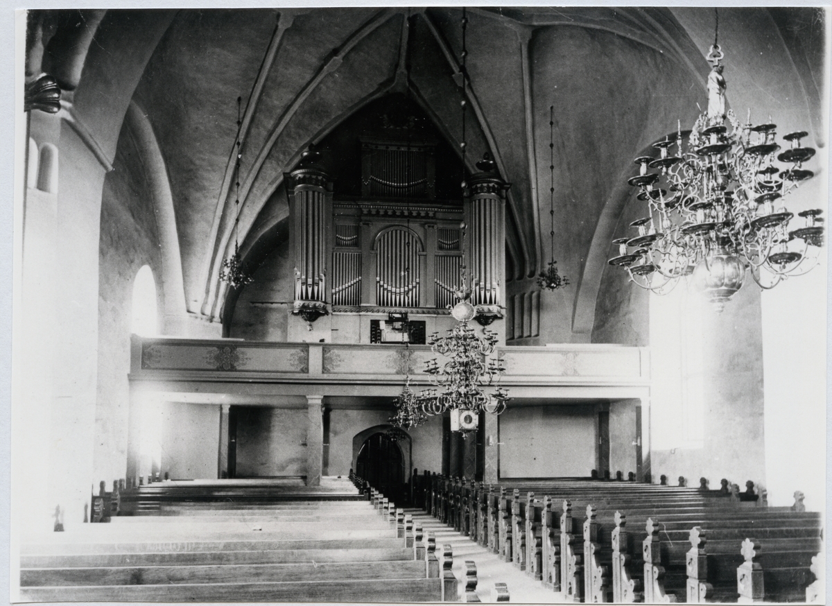 Interiör av Norbergs kyrka, mot kyrkorgeln, c:a 1900.
