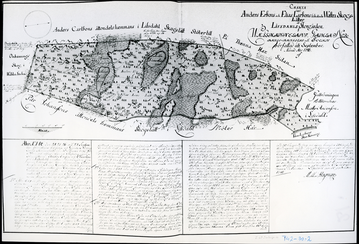 Karta över Lifsdahl (Livsdal), från 1746.