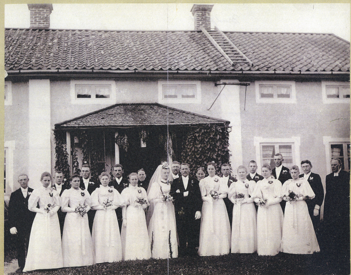 Bröllopsfoto av brudparet August Ahlenblad och Matilda Andersson, 1895.