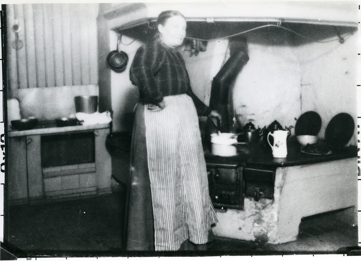 Per Ols gård. Kristina Katarina Andersson i Köket, c:a 1905.